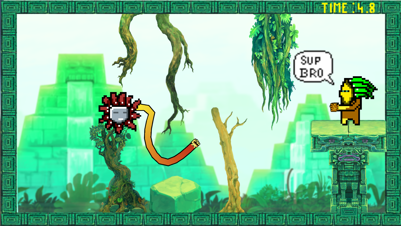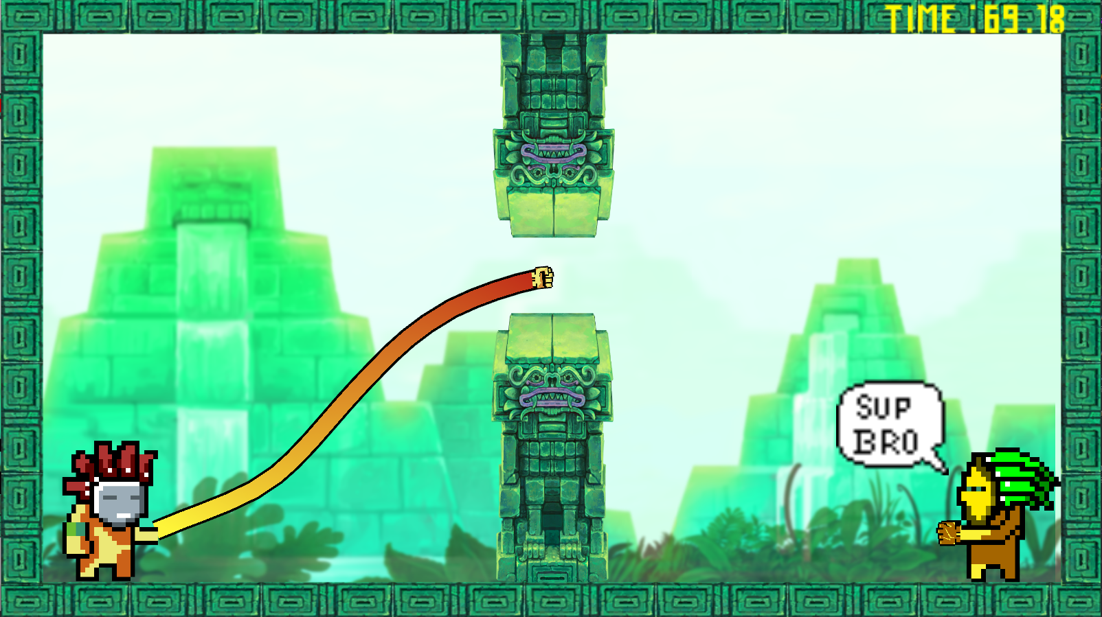To do that, you can strech your arm with left clic and then move your body towards your fist with right clic. Very basic mechanic paired with an easy grip makes the game simple to pick up. However, the learning curve of the game being quite high due to the increasing difficulty of the levels. The player quickly finds himself pressured by the timer, making the experience addictive but still fun.